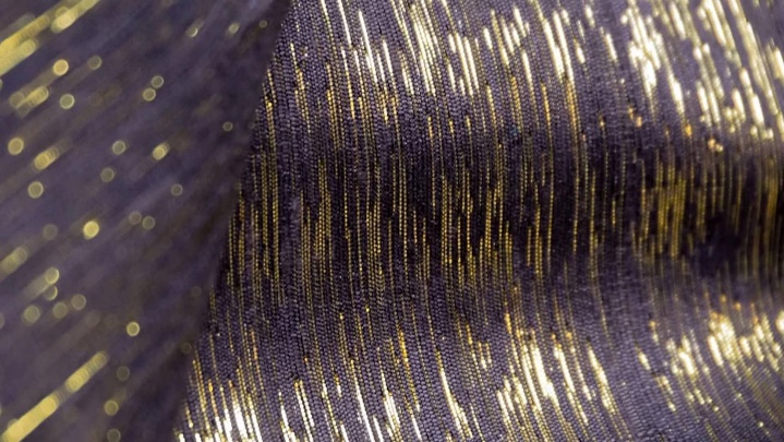 ผ้าไหมแท้ 100% สีพื้นสีน้ำตาลเข้มเกือบดำ ทอด้วยเทคนิคสอดดิ้นอย่างประณีต เผยประกายสองเฉดเมื่อกระทบแสง ให้ความงดงามหรูหราแต่แฝงความเรียบสงบในเวลาเดียวกัน ผลงานทอที่สะท้อนความชำนาญและเอกลักษณ์เฉพาะของช่างทอไทย เหมาะสำหรับตัดเย็บชุดสุภาพ ชุดพิธีการ หรือใช้ตกแต่งภายในอย่างมีรสนิยม