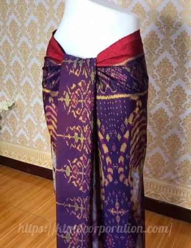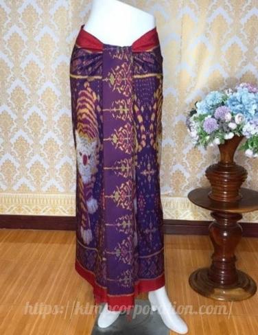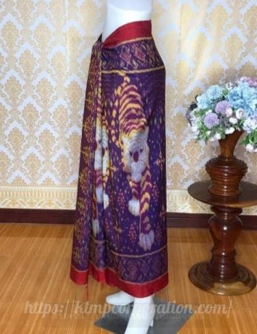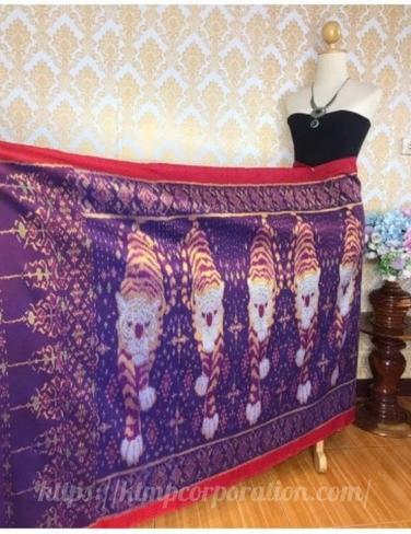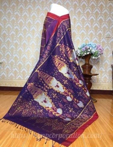 ผ้าไหม ลูกแก้ว มัดหมี่ ไหมแท้ ลายสัตว์มงคล มีหน้านางชายครุยลสยเสือ(สีน้ำตาลเหลือบน้ำเงิน)