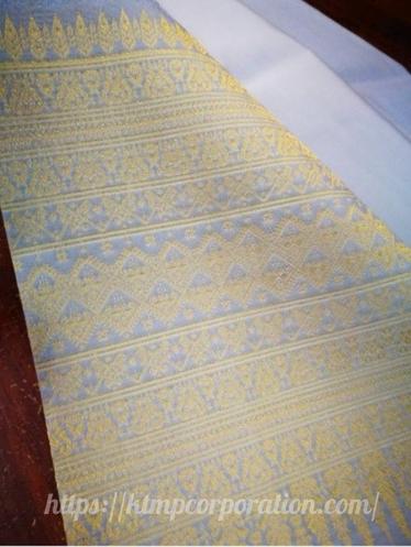 ผ้าไหมยกดอกสุรินทร์ 32ตะกอ (พื้นสีฟ้าเทา)